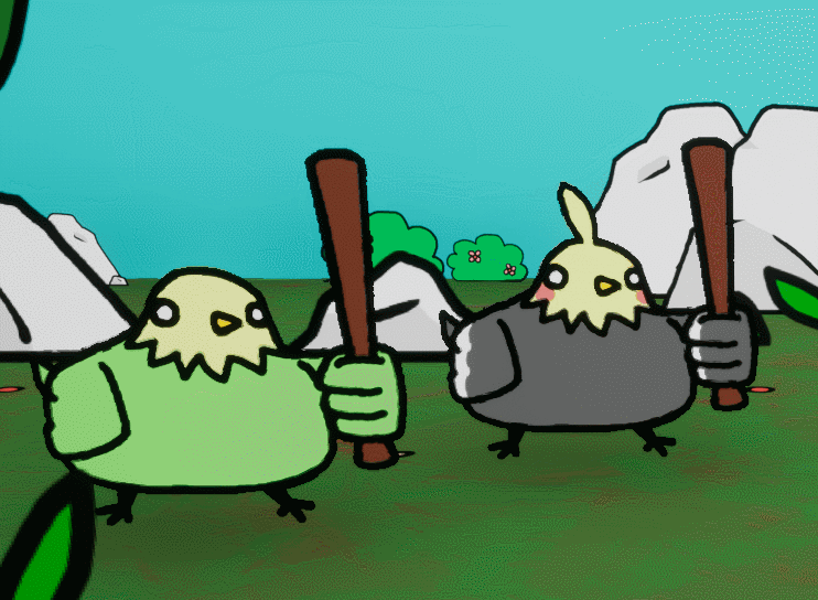 Players control a Cockatiel and a Budgie as they face off against their rivals Sparrow and Pigeon. Using an Action-timer based turn system, a characters turn is decided by their individual speed stat, Once active a character can attack with both physical and magic, defend against their next incoming attack or heal themselves for a portion of their max HP.