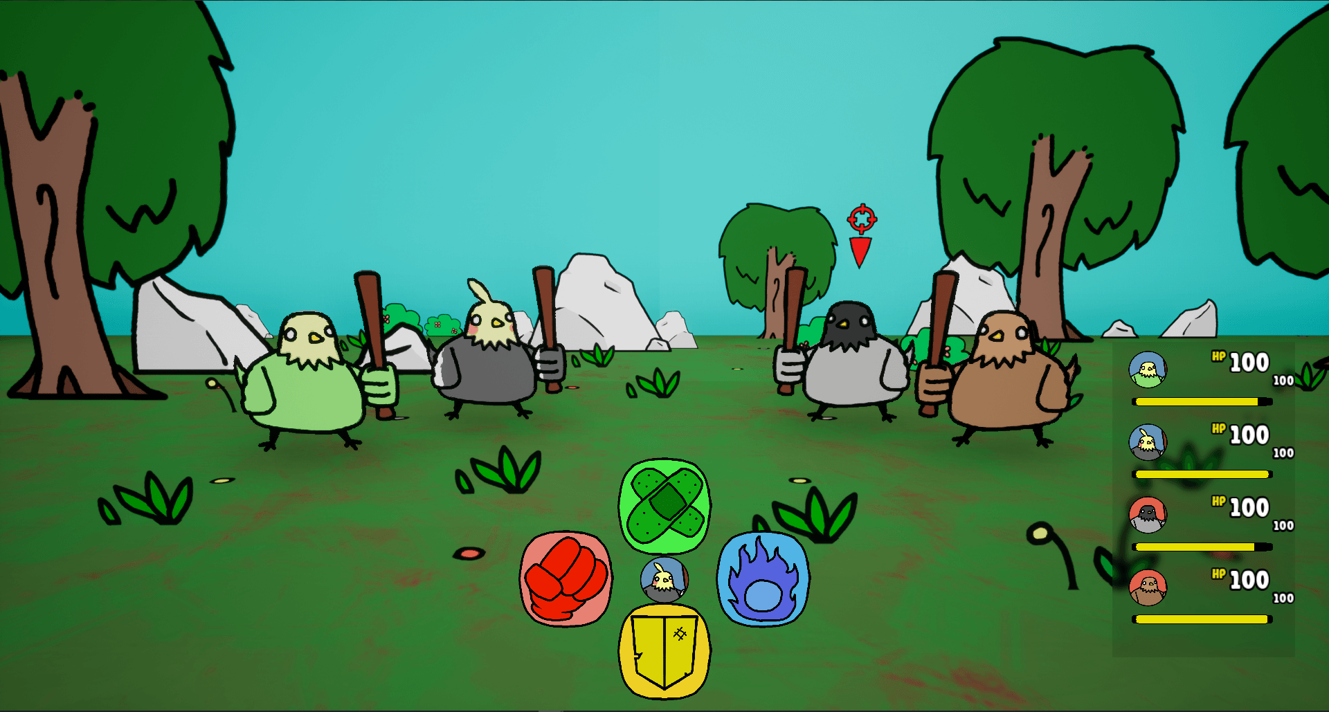 Take control of tiny birds wielding big bats in this simple turn based RPG